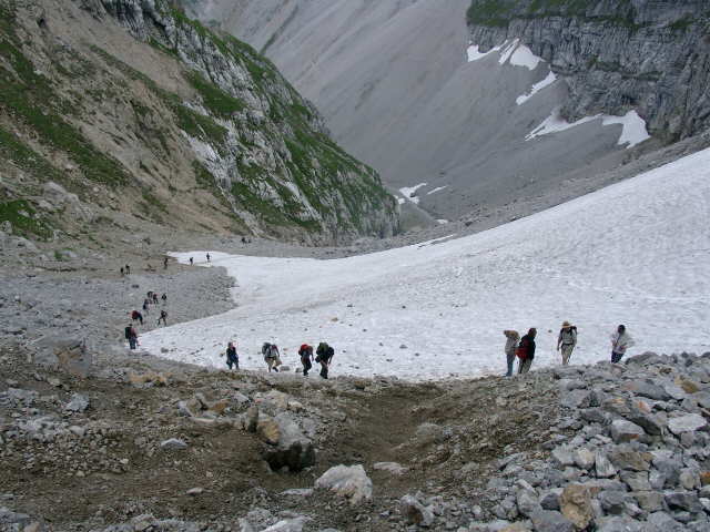 Sonntag stiegen wir über die Dammkarhütte und ein Geröllfeld hoch zum Karwendel. Am Gipfel machten wir kurz Rast und ließen uns dann gemütlich mit der Bahn wieder ins Tal bringen.