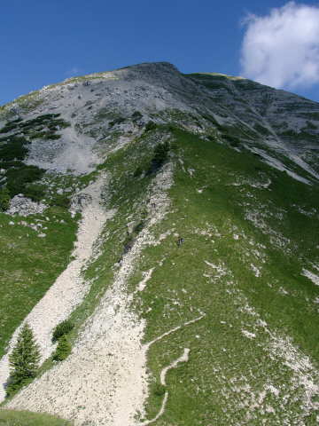 Montag gingen wir zuerst den gleichen Weg wie Sonntag, bogen dann aber links ab zur Hochlandhütte, hielten Brotzeit und wanderten dann weiter über den Wörnersattel zur Vereinalm/Kriemer Kofler Hütte.